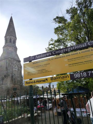 包曼市集(Balmain Market)是雪梨歷史最悠久市集的第三名, 起始於1977年, 位於雪梨一個很有特色的包曼區中的St Andrews Congregational Church, 這座教堂已經有156年的歷史了, 對於台灣人來說, 可能覺得156年並不是歷史多悠久的古蹟, 但對於才獨立建國108年的澳洲來說, 已經算是具有歷史意義的建築物了。